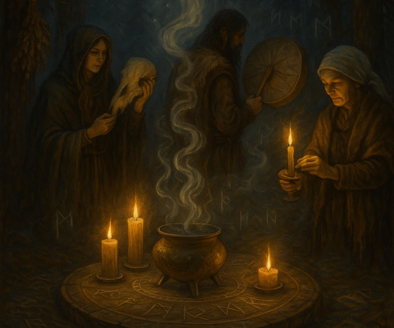Zu den Rauhnächten gehören nicht nur Rituale, sondern auch zahlreiche Gestalten aus dem Volksglauben. Besonders bekannt ist Frau Holle, die in vielen Überlieferungen nicht nur als Hüterin der Natur, sondern auch als Richterin über Fleiß und Ordnung gilt. In anderen Regionen erscheinen Perchten, Geisterwesen, Ahnenseelen oder Schutzgeister, die durch die Nächte streifen und die Menschen an alte Werte erinnern. Viele dieser Figuren verkörpern Themen wie Reinheit, Ordnung, Wahrheit oder das Gleichgewicht zwischen Licht und Dunkel.